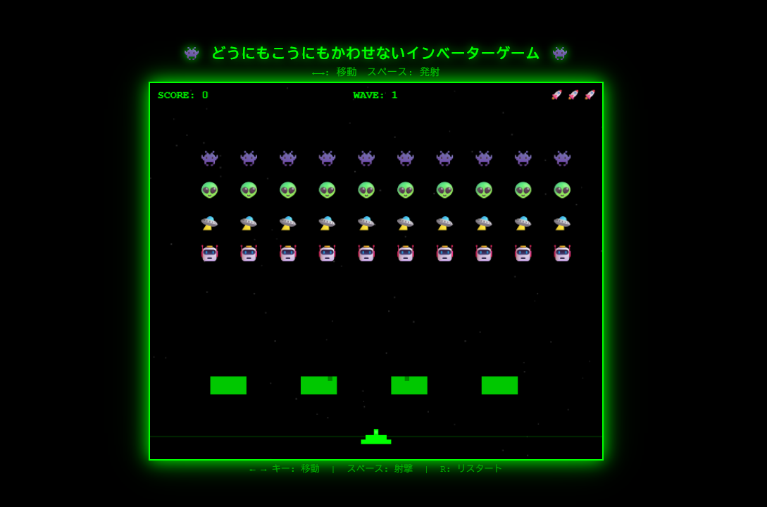 「どうにもこうにもかわせないインベーダーゲーム」プレイする!(別画面)
